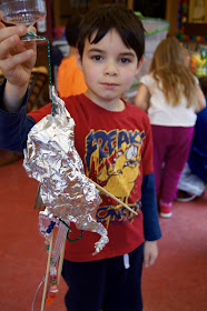 In art we created "noise machines" for the community garden.  We talked about all the different ways you could scare the animals away and the kids have come up with some pretty unique creations.